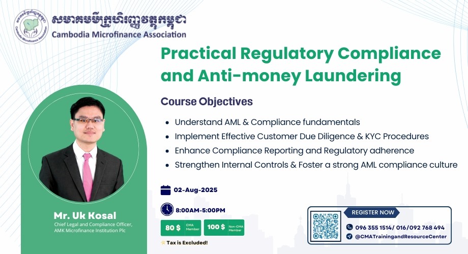 This program offers a practical understanding of corporate governance in Cambodia, focusing on transparency, accountability, and sustainable business growth through lectures, case studies, and discussions. |